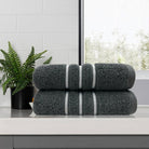 amor classic dobby stripe super soft premium cotton bath towel 2 pcs charcoal