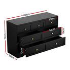 The Artiss Chest of Drawers offers a perfect blend of style and functionality, featuring 7 spacious drawers for all your storage needs. The metal handles add a modern touch, while the anti-rust coated metal drawer runners ensure smooth operation. With a high weight capacity, the top drawers can hold up to 5kg, while the bottom drawers support up to 10kg, this chest is designed to hold your items securely. It also includes a wall attachment for added stability and safety.The paper veneer finish makes the chest easy to clean and maintain. Whether for your bedroom, living room, or hallway, the Artiss Chest of Drawers is a versatile and practical addition to any space.