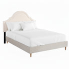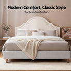 CLARA Queen Bed Frame – Beige Scalloped Velvet Headboard with Under-Bed Storage