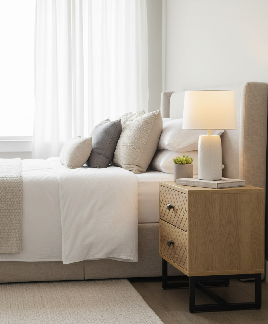 Complete your bedroom furniture set with our curated collection of bedside tables. We offer modern, stylish designs—from minimalist floating styles to functional bedside tables with storage—to keep your essentials close at hand. Find the perfect partner for your bed frame and elevate your sleep space with practical elegance.
