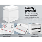 Artiss 2X Bedside Table 2 Drawers Lift-up Storage White