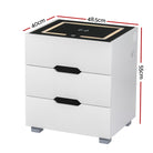 Artiss Smart Bedside Table 3 Drawers with Wireless Charging Ports LED White ADAD