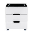 Upgrade your living space with the Artiss Adad Smart Bedside Table. The table allows you to charge your phone wirelessly or via USB. Constructed from quality particleboard and topped with a tempered glass tabletop, the smart table is perfectly stylish and durable. The three drawers feature elegant and minimalist gap handles and ample storage space for all your night-time essentials. With one USB and one type C charging port, you can charge your devices both wirelessly and wired. Adjust the light-up charging panel to achieve the perfect ambience for sleep. The plastic legs will keep your table standing, while anti-slip pads keep the piece in place and protect your floors. Easy to assemble and even easier to maintain, you'll love the style and functionality of the Adad Smart BedsideTable from Artiss.
