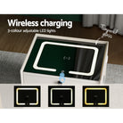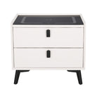 Upgrade your living space with the Artiss Aika Smart Bedside Table. The table allows you to charge your phone wirelessly or via USB, and also contains a Bluetooth speaker to listen to your favourite tunes. Constructed from quality MDF upholstered with premium PU leather and topped with a tempered glass tabletop, the smart table is perfectly stylish and durable. The two drawers feature sleek metal handles and ample storage space for all your night-time essentials. With one USB and one type C charging port, you can charge your devices both wirelessly and wired. Adjust the light-up charging panel to achieve the perfect ambience for sleep. The metal legs will keep your table standing, while anti-slip pads keep the piece in place and protect your floors. Easy to assemble and even easier to maintain, you'll love the style and functionality of the Aika Smart Bedside Table from Artiss.