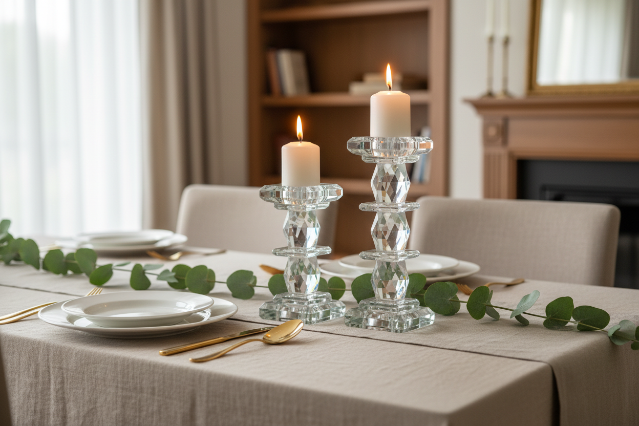 BEATRICE Crystal Candle Pillar Set – Luxury Glass Candle Holder Duo (Small & Large)