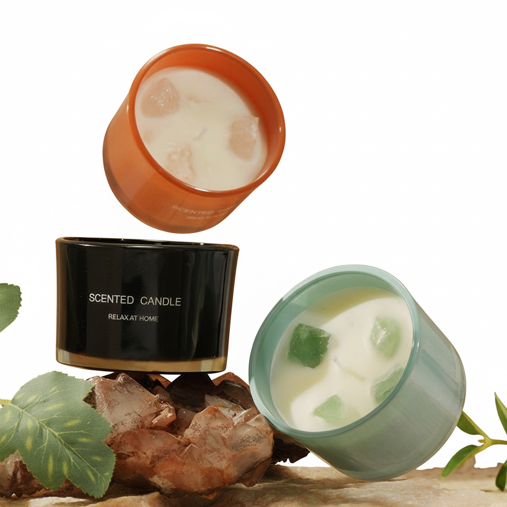 MISTY 3-Piece Macaron Crystal Scented Candle Set (Misty Morning) – Aromatherapy Gift