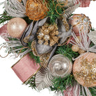 Deck your doorway in decadence. This lush green wreath sparkles with jewelled baubles, florals, pine cones and ribbon in elegant pink, champagne and silver. Fully pre-decorated and perfectly sized for walls, doors or mantels, it is a ready-made Christmas statement that brings festive charm without lifting a decorating finger.