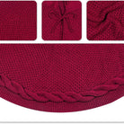 Red Luxury Knit Christmas Tree Skirt with Cable-Knit Border - Rustic Holiday Decor(122cm)