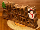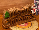 Wooden carved Merry Christmas decoration 38 cm long with Tree and Star