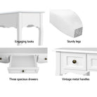 Welcome your guests with a touch of vintage class with our period-inspired Artiss Console Table. Perfect for the hallway, lounge or any room in your home that requires a standout piece, our French provincial console table offers a gracious presence with great functionality. Not least, it also serves as a wonderful front console table for your caf��, restaurant or shop to welcome customers with chic and charm. Made of high quality MDF board for the tabletop and sturdy paulownia wood for the rest, the console table looks absolutely beautiful with its meticulous craftsmanship and fine lacquered finish. Three generous-sized drawers with exquisite antique-style metal handles provide ample storage space for your essentials and knick-knacks while the wide tabletop lets you display your favourite home d��cor in resplendent style. Make a grand entrance for your guests or even for yourself with our vintage console table. It will be a gracious welcome indeed.