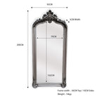 The LUX Arch French Provincial Ornate Mirror - Antique Silver is a stunning and unique addition to any home decor. The mirror measures 92cm x 200cm and is made from high-quality materials, including a PU frame and mirror.