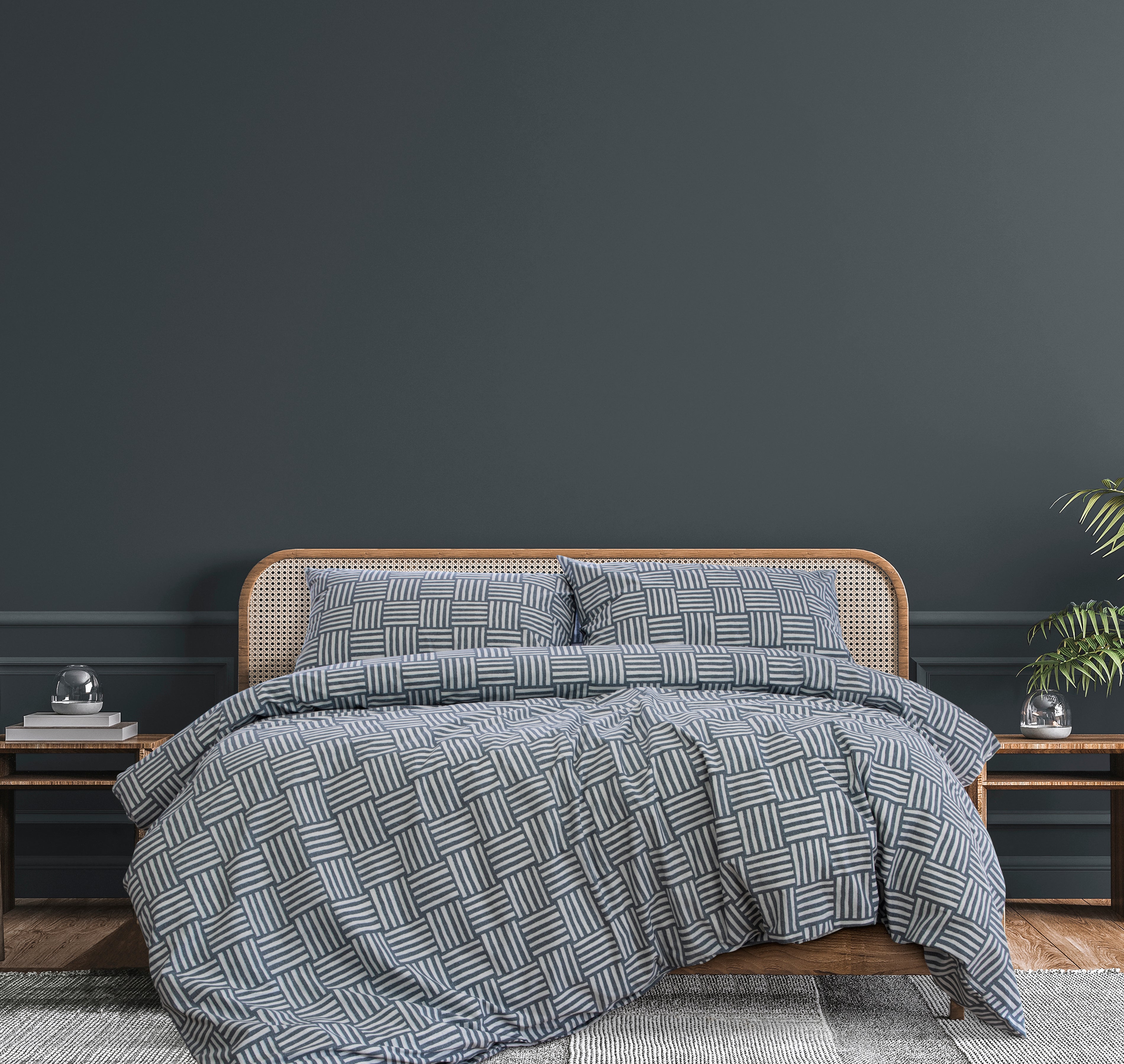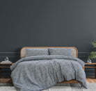 LEO King Quilt Cover Set – Faded Indigo Organic Geometric Print Bedding