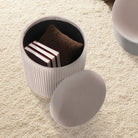 2X Side Table Storage Ottoman - Velvet Stool MIRA Cream