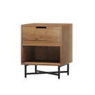 Elevate your living space with the Kaleb, a versatile piece of industrial style furniture that blends seamlessly with most home decor and remains trending for years to come. This robust nightstand is crafted from a thick board with a realistic wood grain finish and is supported by a sturdy x-shape metal frame base for long-lasting durability. The thoughtful design features a spacious drawer with a unique air-gap handle and smooth metal runners, allowing you to access your belongings with ease. Below the drawer, a generous bottom display shelf provides a convenient spot for books, tablets, or decorative accents, ensuring your bedroom essentials are always within reach. To protect your home, integrated floor protectors keep the unit stable while preventing scrapes and scratches on your flooring. The smooth surface makes this rustic oak side table easy to clean and maintain, and the simple assembly instructions mean you can refresh your bedroom styling in no time. Whether used as a classic nightstand or a functional end table, this piece brings an authentic warehouse-chic aesthetic to any modern interior.