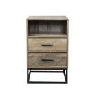 With a contemporary design, this bedside table is quite modern in form and function and adds an exquisite look and timeless appeal to your space. Nothing mundane. This statement furniture spells sophistication in its every detail. The colour, style and design make it incredibly versatile and seamlessly fits in any bedroom interior and style. Made from high-quality materials, the bedside table features a smooth and exquisite surface, anti-rust coated runners and a sturdy metal base and handles for extra stability and durability. Featuring two spacious drawers and an open shelf, this bedroom furniture makes an awesome storage unit too. If a good book has kept you late, you can tuck it in one of the drawers or keep your bedtime essentials all at hand without any clutter. It has enough space to store your personal belongings.