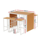 The table features premium engineered wood slats mounted on a corrosion-resistant powder-coated steel frame, ensuring the set is designed to withstand all kinds of weather. The slatted design also ensures proper drainage during wet weather. For maximum comfort, each outdoor bar stool includes a built-in footrest. The integrated design makes this set incredibly space-saving—simply slide the chairs completely underneath the table when finished for seamless, clutter-free storage. Easy to assemble, you can use this durable garden bar set either outdoors or indoors for a fashionable bar setup anywhere in the home.