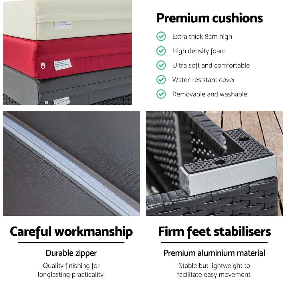 Bask in the summer glow with this comprehensive 3-piece garden sun lounger set. Crafted from durable, all-weather resistant materials, this outdoor relaxation set ensures many seasons of luxurious comfort. The set typically includes two reclining adjustable sun lounges and one matching side table, providing the perfect spot for drinks, books, or sunbathing essentials. Its uncomplicated, relaxed design invites you to immerse yourself in the sun's embrace, making it your go-to spot for sunbathing, reading, or simply unwinding by the poolside or on the patio. The loungers feature a multi-position backrest for customizable comfort. This versatile outdoor furniture set is designed for endless summer moments. Make every sunbeam count!