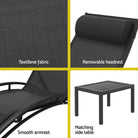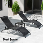 Gardeon 3PC Sun Lounge Outdoor Lounger Steel Table Chairs Patio Furniture Garden