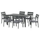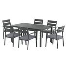 Bring friends and family together with this stunning seven-piece modern metal dining ensemble, designed for comfortable outdoor entertaining. This complete 6-seater outdoor dining set provides ample room for everyone to enjoy a casual outdoor dinner or luncheon, featuring six stylish dining chairs surrounding a generous dining table. The sleek black matte finish and classic design make it an ideal set for backyards of all kinds, perfect for all your indoor and outdoor entertainment needs.