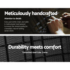 Built to withstand all weather and the test of time, this outdoor furniture set is constructed from durable UV-resistant PE wicker woven over a sturdy steel frame. The elegant side table features a robust 5mm tempered glass top, ensuring strong and safe use with total peace of mind. For easy maintenance, all cushion covers are removable and washable to maintain their pristine appearance. This versatile rattan patio set is perfect for your deck, patio, or even your sunroom or living room.