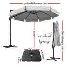OSCAR 3m Cantilever Outdoor Umbrella – 360 Degree Tilt Grey Roma Shade