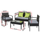 The set is constructed with a durable aluminium frame and highly uv resistant pe wicker, ensuring you won't be disappointed with the quality or longevity. The accompanying rattan coffee table features a strong tempered glass top for safety and convenience.