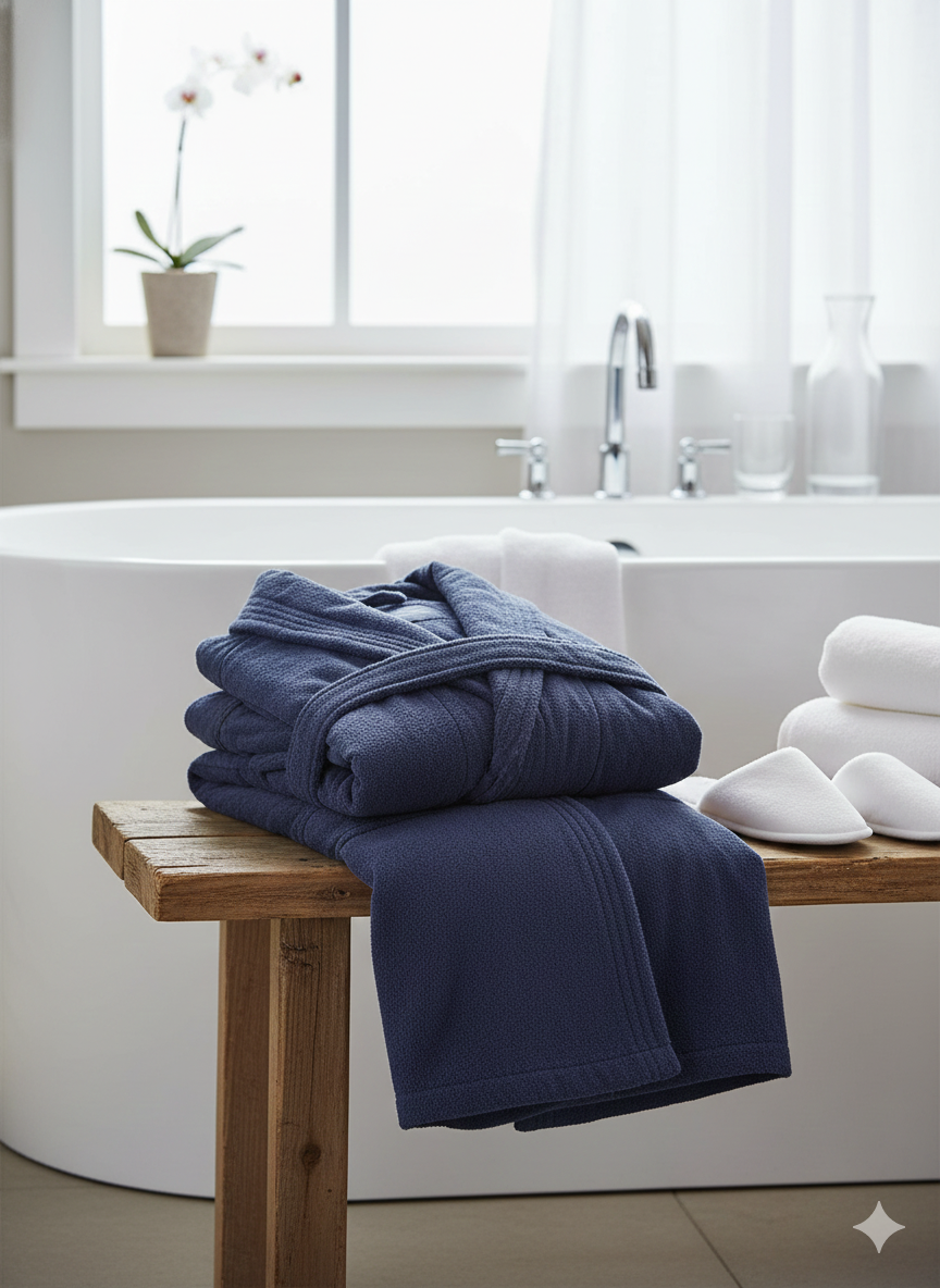 LIAM Small Medium Egyptian Cotton Terry Toweling Bathrobe Navy