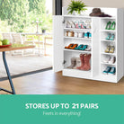 BECKETT Shoe Rack Cabinet – 21 Pair Capacity White Storage with Side Shelves