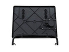 Folds into a semi-folded position for storage next to a chair or completely folded configuration for storage under a sofa or in a closet