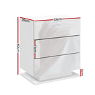 Tired of fumbling in the dark for a light switch in the middle of the night? With our Artiss LED Bedside Table, your problems are solved. The bedside table comes with built-in LED lighting that can be customised into 16 different colours and 4 different effects to suit your preference. Not only will it create a beautiful ambience, it will also save you from buying extra bedside lamps or nightlights. Three deep drawers sliding on smooth coated runners provide ample storage space. Better still, the handle-free design gives it a modern vibe that stands out from the mundane. Constructed from quality particle board and MDF with melamine finish and high-gloss UV front, the bedside table is durable and easy to maintain. And it will be the perfect addition to your modern bedroom with its contemporary and linear design. Or you can even keep one in the living room to wow all your houseguests.